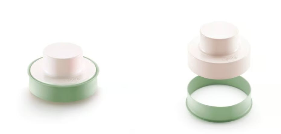 The platinum silicone ring is non-stick for easy use and can be washed in the dishwasher. It stays compact in one piece to save space in your kitchen.