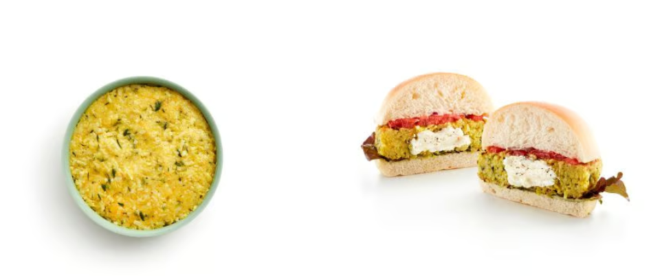 Zmešajte vse sestavine za vaš vegetarijanski burger. Napolnite model. Pritisnite s Veggie Burgerjem. Odstranite iz modela! For a filled burger: