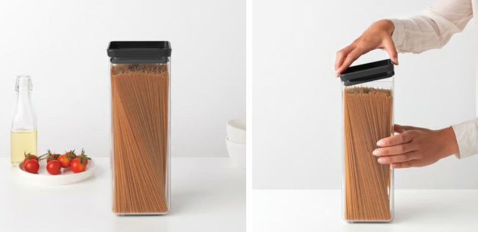 Održavanje kuhinje urednom ponekad može biti izazov. Brabantia vam rado pomaže svojim Tasty+plastičnim posudama koje se mogu slagati. Čvrst i prostorom štedljiv dizajn omogućuje vam da sadržaj vidite na prvi pogled. Idealno za pregledno skladištenje i duže očuvanje svježine hrane. Savršeni organizator koji štedi prostor!